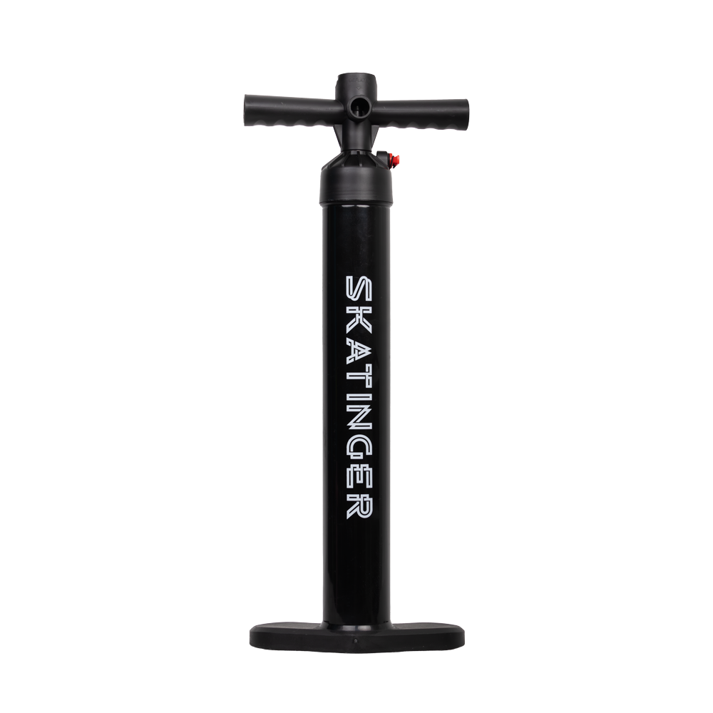 Pompka Skatinger pozwala szybko i w prosty sposób napompować deskę SUP do optymalnego dla niej ciśnienia, a po zakończonej aktywności, wypompować powietrze.