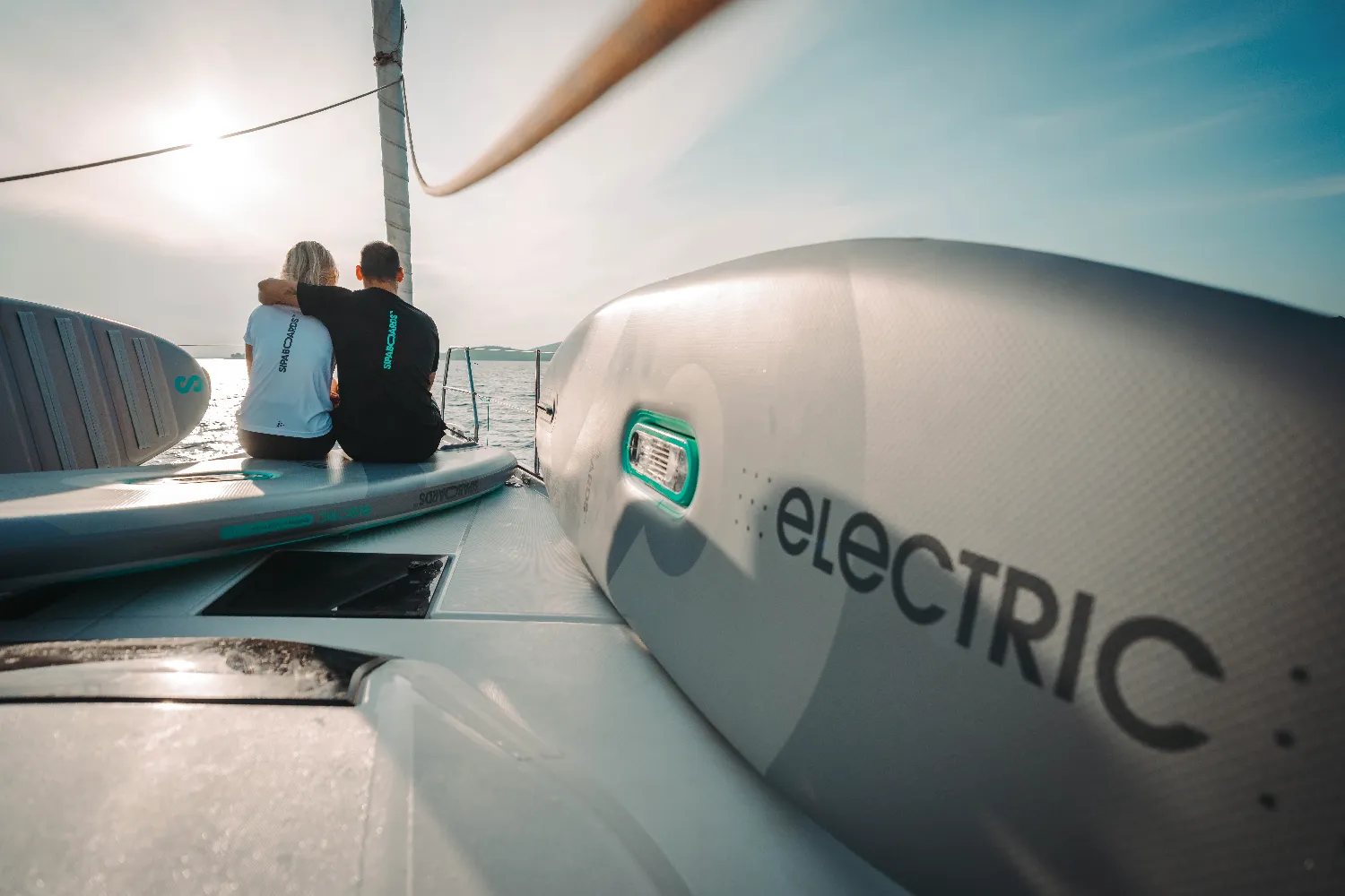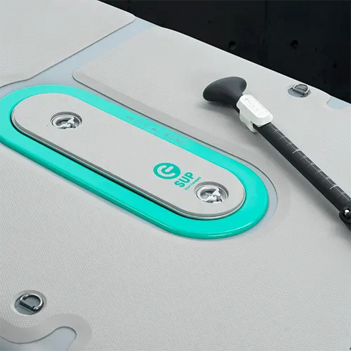 Wyposażony w silnik wodny o zerowej emisji, który w ciągu kilku minut napompowuje deskę do idealnego ciśnienia.