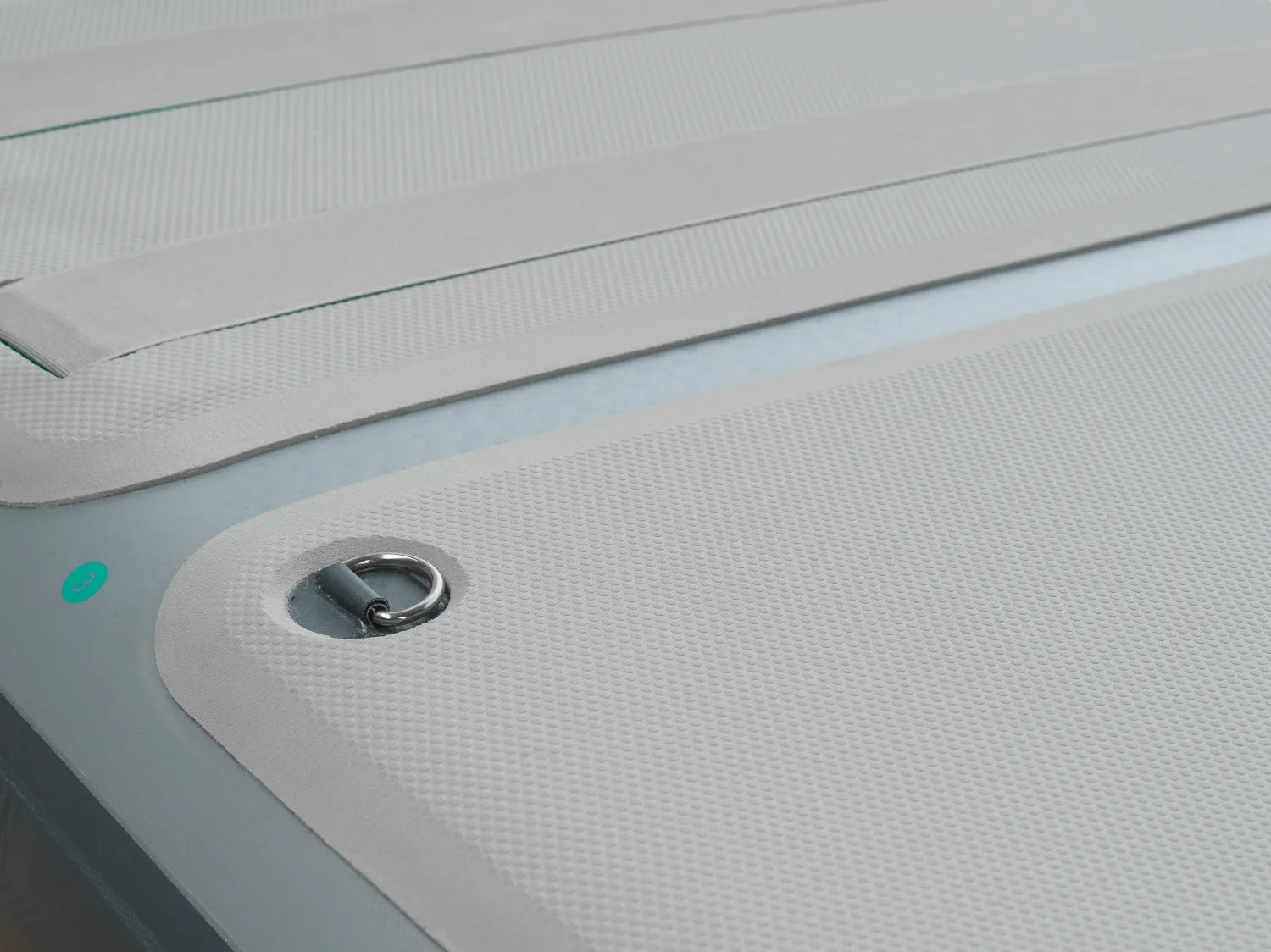 Deska Tourer została wykonana z najwyższej jakości tkaniny X-woven dropstitch z rdzeniem o wysokiej gęstości. Rdzeń DS zapewnia sztywność i stabilność, a jednocześnie lekkość konstrukcji, co gwarantuje maksymalną zwrotność. Deska posiada podwójne wzmocnienia boczne, które zwiększają jej wytrzymałość i odporność na pękanie.