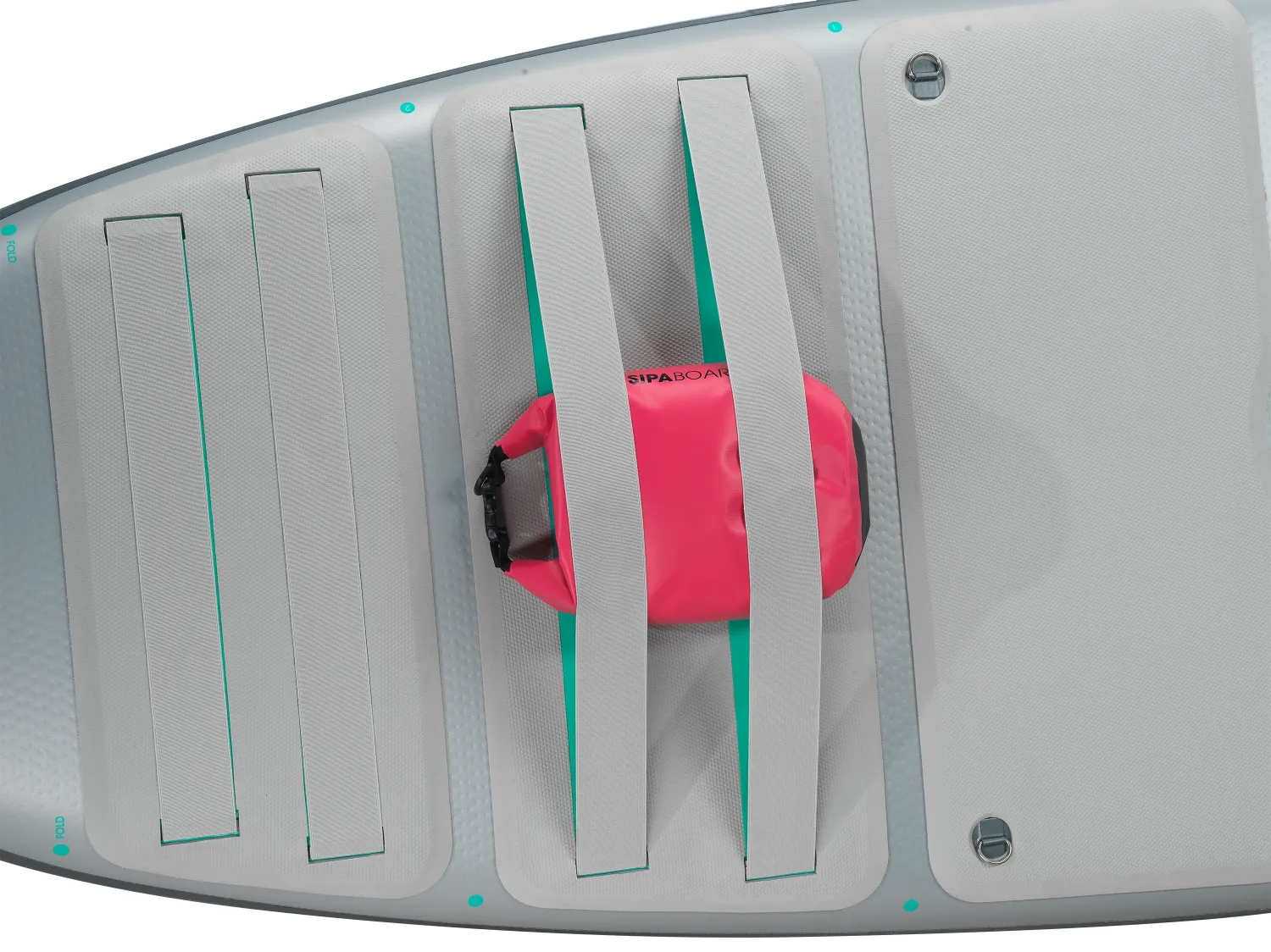Nowo zaprojektowany system śruby napędowej i tłumika znacznie redukuje hałas podczas pływania po wodzie. Bezemisyjny napęd SipaDrive delikatnie popycha Cię przez fale i wiatr. Ponieważ silnik jest w pełni zintegrowany z deską, nie ma oporu podczas wiosłowania przy wyłączonym silniku. Doświadcz czystej radości.
