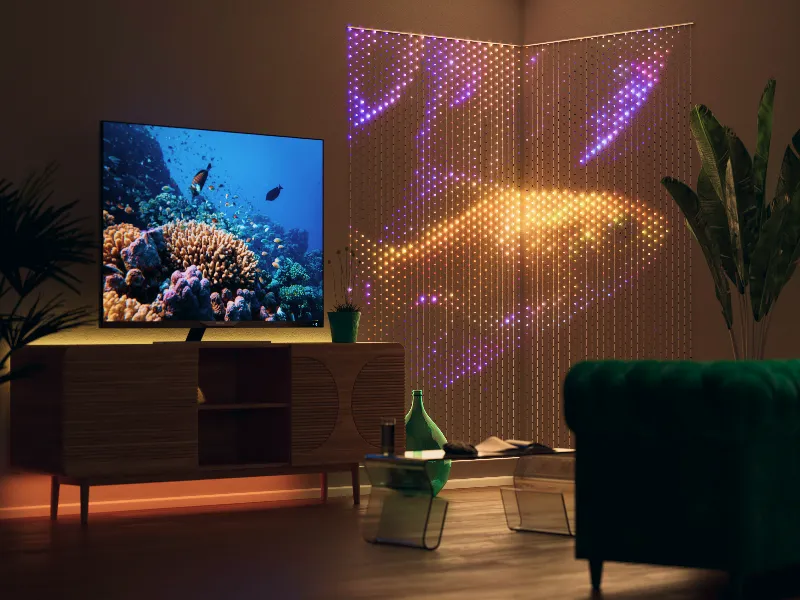 Połącz ze sobą dwie i więcej kurtyn Matrix lub połącz je z innymi urządzeniami Twinkly, aby uzyskać większe, zsynchronizowane instalacje.