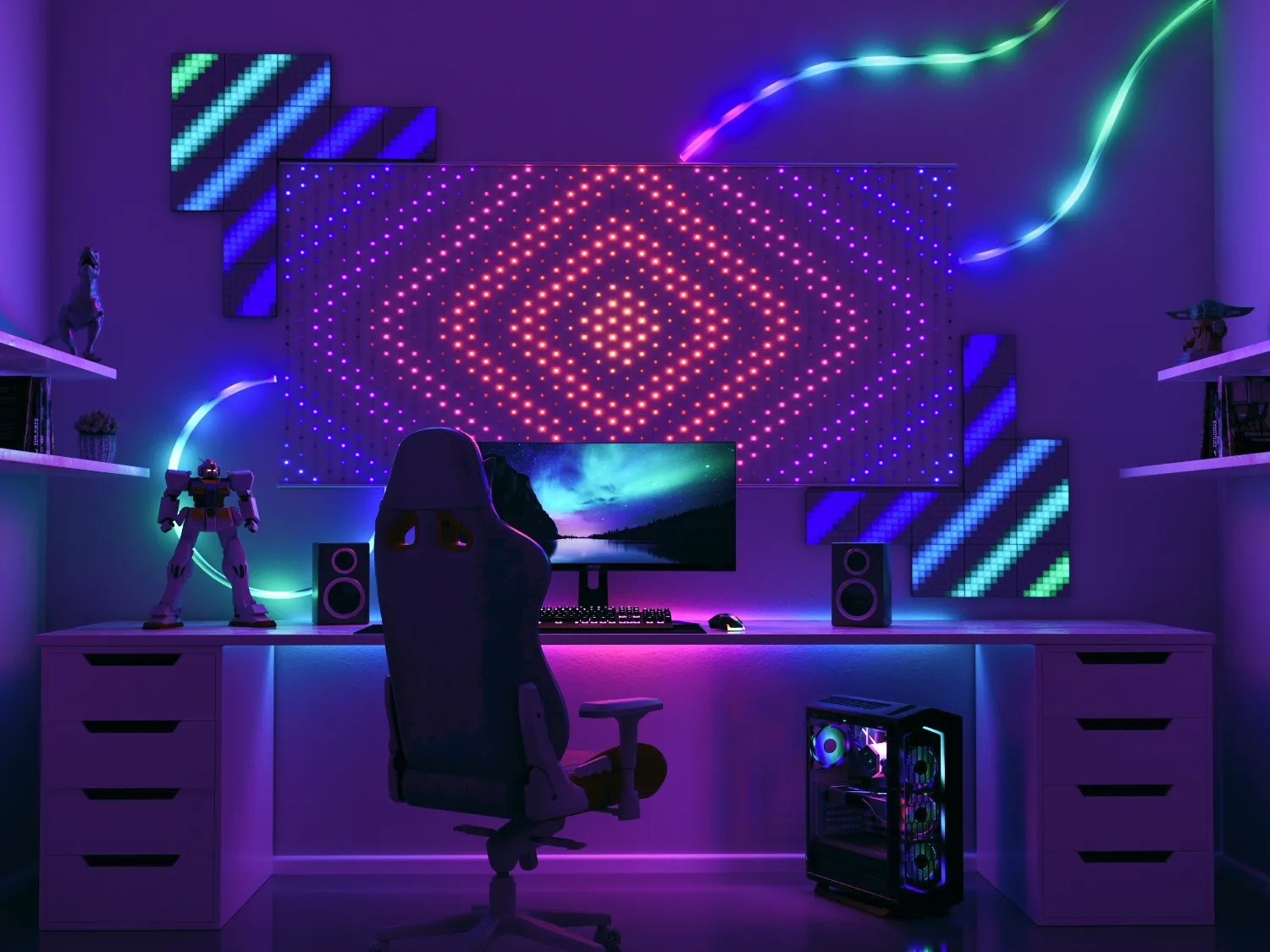 Aplikacja mobilna umożliwia odtwarzanie gotowych gradientów i animacji, które można również personalizować i nimi sterować. Z łatwością twórz własne efekty od podstaw lub przesyłaj pliki GIF do wyświetlania.