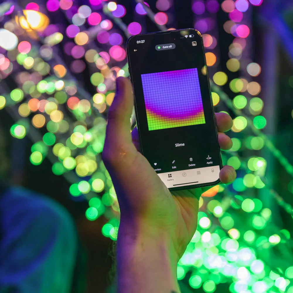 Twinkly PLUS Curtain wprowadza oświetlenie na poziomie profesjonalnym, oferując inteligentny, ekranowy wyświetlacz, który emituje wyjątkowo jasne światło, umożliwiając tworzenie spersonalizowanych, zachwycających animacji w ponad 16 milionach kolorów. Podłącz do kontrolera Twinkly PLUS, aby łatwo mapować światła za pomocą kamery smartfona i aplikacji, co natychmiast odblokowuje nieskończone możliwości gradientów kolorów, efektów oraz grupowania, łącząc dziesiątki tysięcy diod LED. Wytrzymała, odporna na warunki atmosferyczne konstrukcja idealnie nadaje się do dużych przestrzeni zarówno wewnętrznych, jak i zewnętrznych.