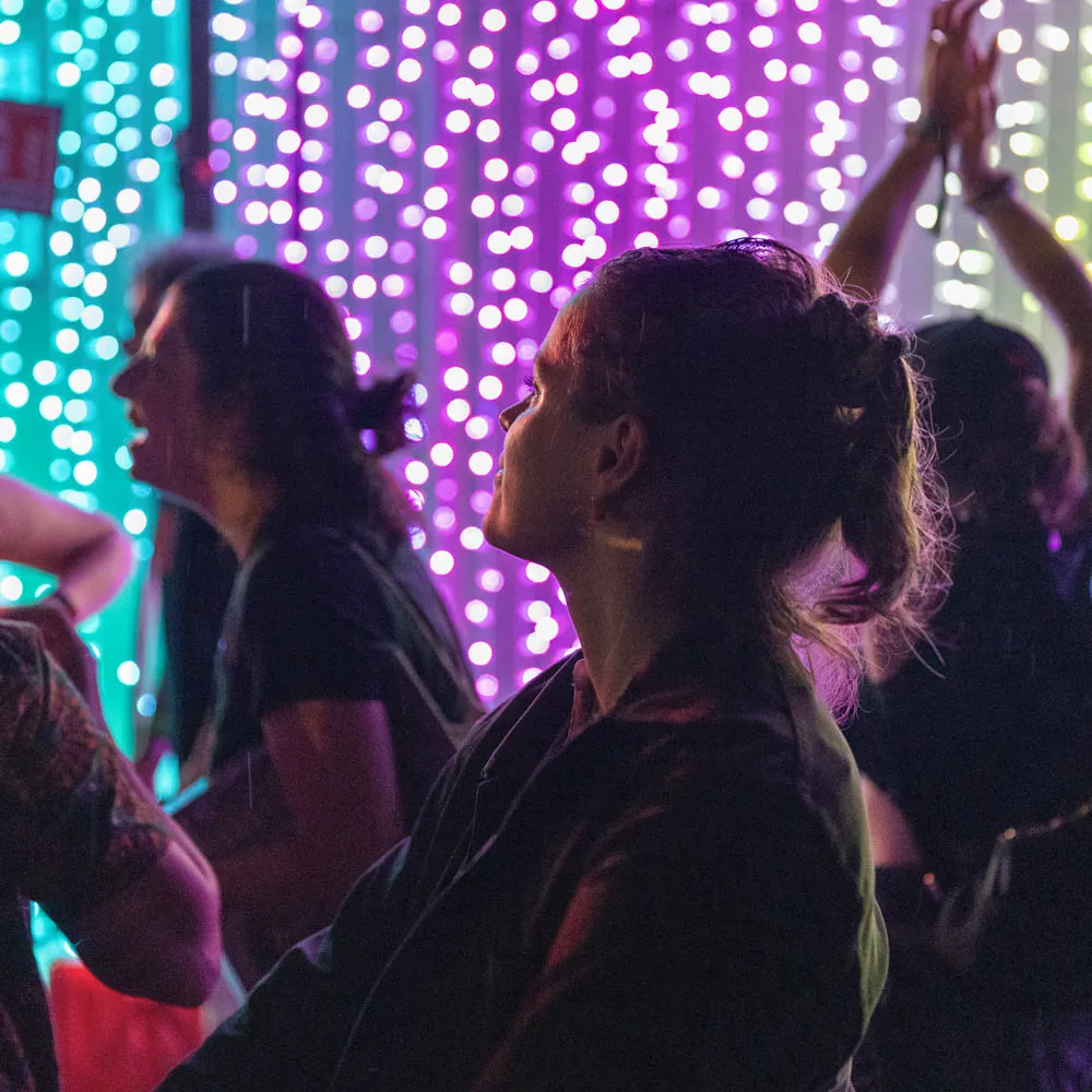 Integracja z DMX otwiera świat nowych możliwości dla szerszego doświadczenia audiowizualnego, oferując sterowanie za pomocą OSC i ArtNet. Łatwo włączaj i wyłączaj światła, zmieniaj kolory oraz odtwarzaj filmy lub playlisty stworzone w aplikacji internetowej Twinkly.
